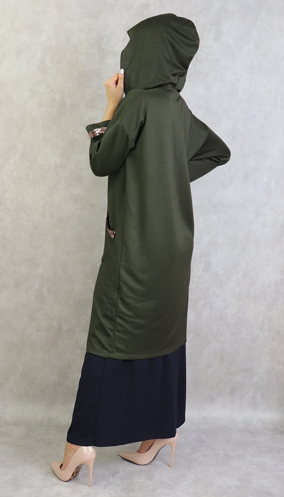 Veste-Tunique zippée à capuche (Tenue Hijab Automne Hiver) - Couleur anthracite et kaki - REF. 35273 (26.00 €)