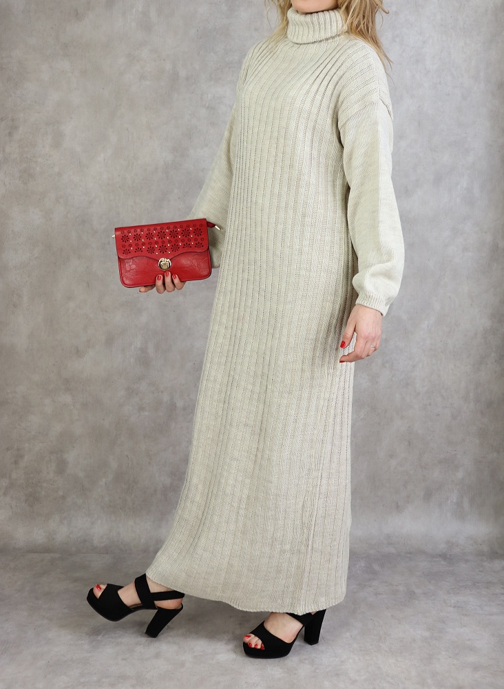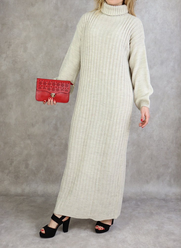 Robe longue à mailles et col roulé de couleur blanc cassé Vetement & Accessoire