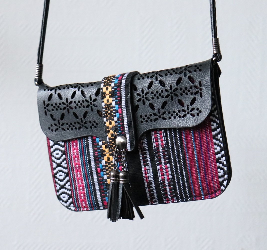Ensemble sac ethnique, étole et sacoche en tissu de sabra marocain aux couleurs chatoyantes - REF. 16912 (49.00 €)
