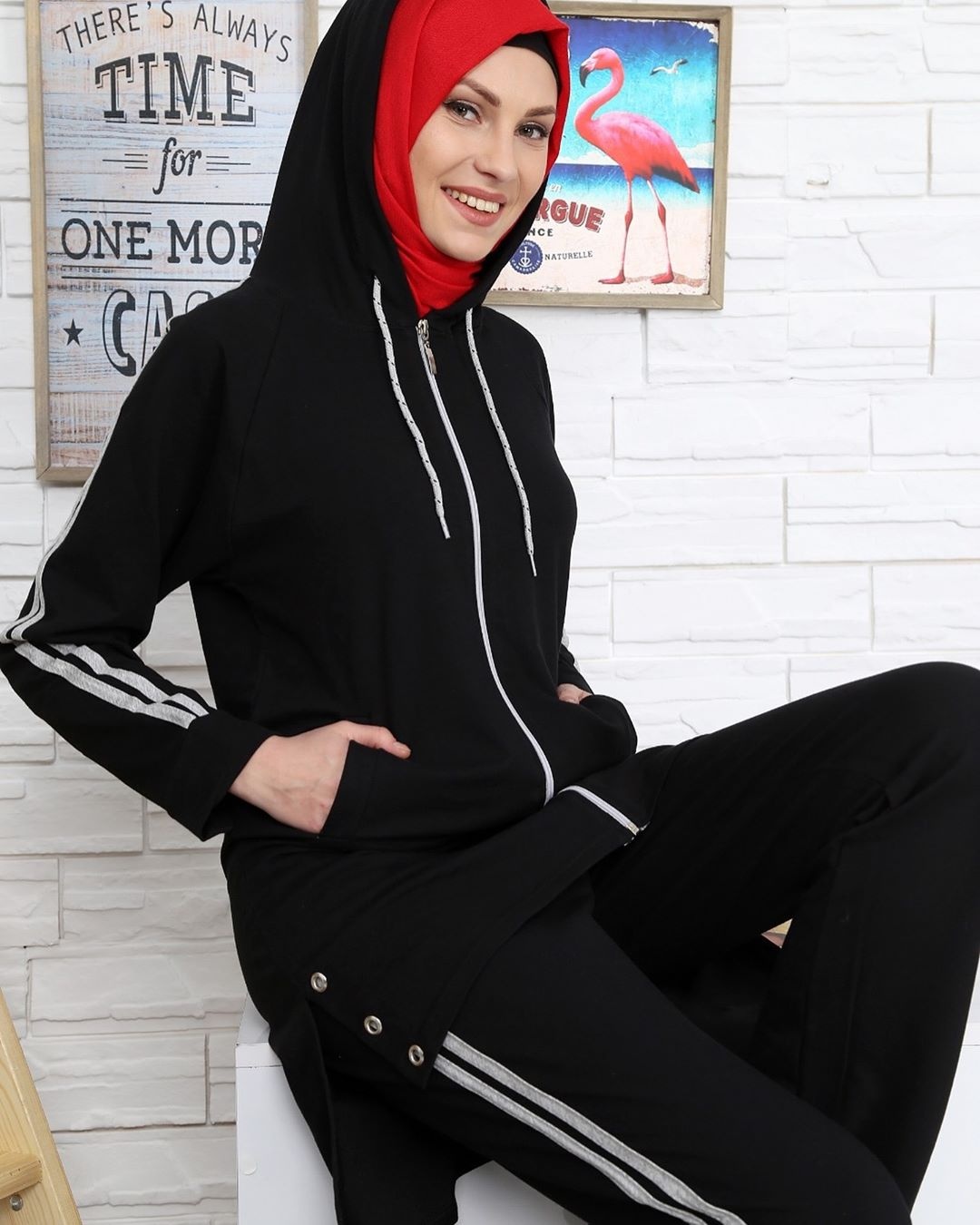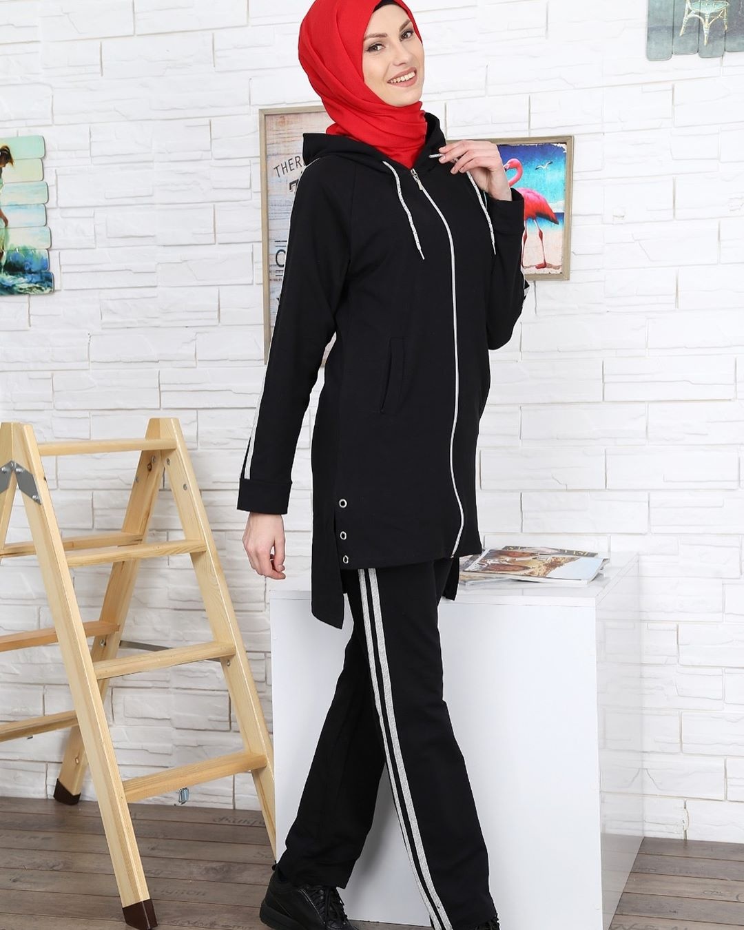 Survêtement avec sweat-shirt à capuche et pantalon jogging type sportswear (Hijab Sport) - Couleur noir - REF. 33192 (29.90 €)