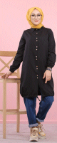 Tunique-Chemise ample boutonnée pour femme (Vetement Hijdab décontracté) - Couleur noir - REF. 32329 (25.00 €) - En Promotion à 19.00 €