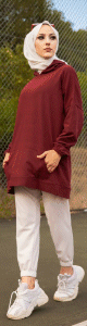 Sweat ample à capuche pour femme imprimé au dos "I am where are you?" (Tenue Sport pour Hijab) - Couleur Bordeaux - REF. 35814 (18.00 €)