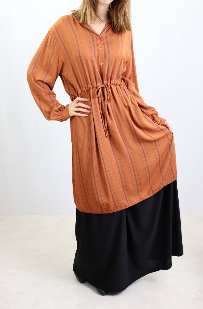 Tunique à rayures en viscose - Taille Unique - Couleur Rouille Vetement & Accessoire