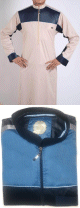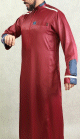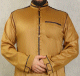 Qamis original de couleur camel et col beige bouton pression décorés (tissés). Tissu satiné.