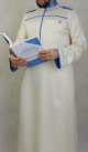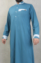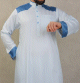 Qamis long manches longues ouverture boutons au niveau de la poitrine. Tissu de qualité supérieure, fluide et très agréable, légèrement satiné, adapté à toutes les saisons. Très bonnes coutures et finitions. Deux grandes poches latérales avec sous-poches internes (pour clés ou petits objets). Le col mao est d'une couleur légèrement plus claire (beige).