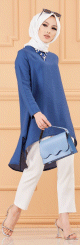 Tunique courte, col dégagé, lien de serrage, manches longues finition élastiques aux poignets. Coupe droite, tissu fluide et léger.