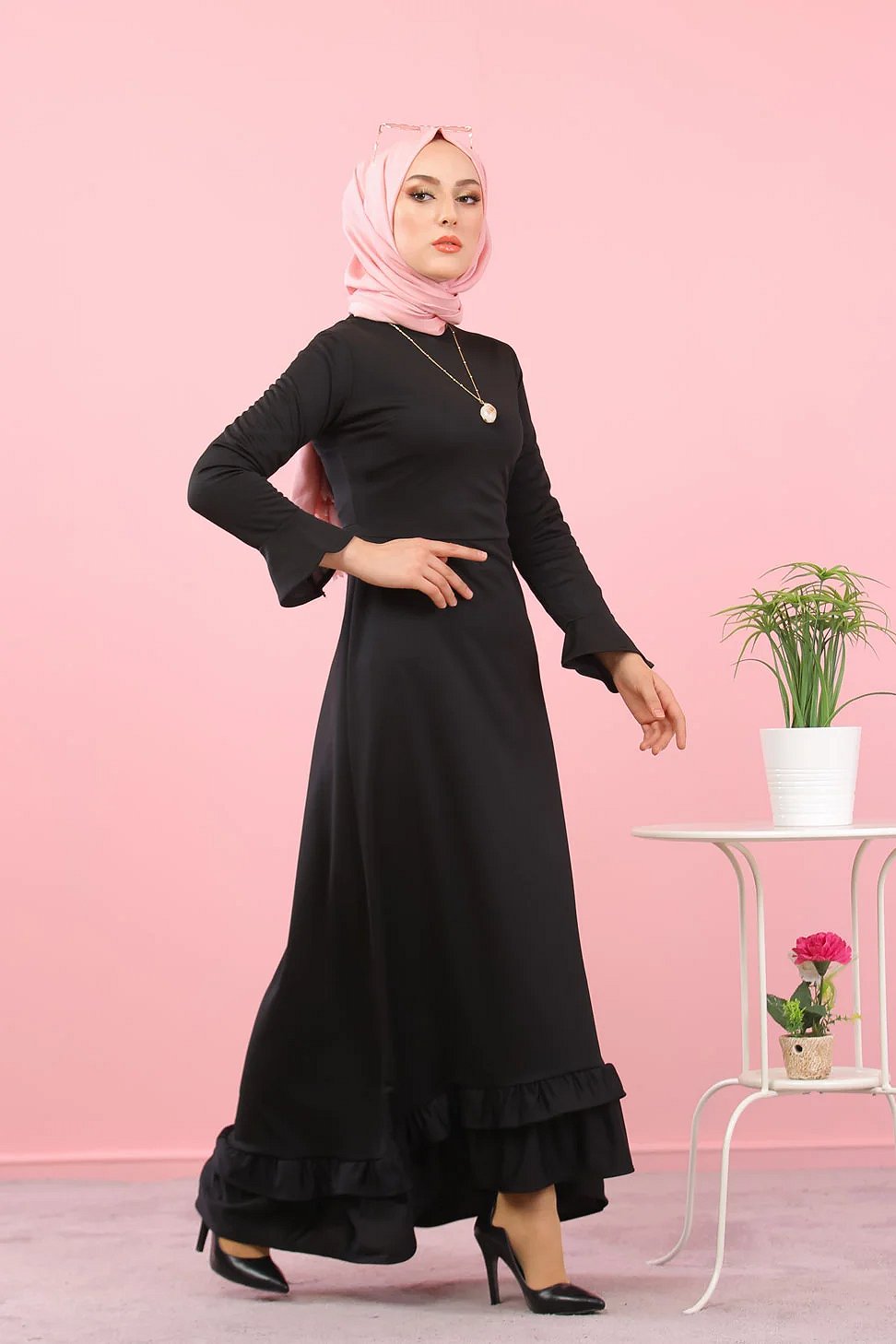 Robe tres longue a volants (Abaya et vetement special femme voilee) - Couleur noire