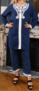 Jabador femme brodé - Ensemble 2 pièces (tunique et pantalon) - Couleur Bleu marine - REF. 33591 (29.90 €)
