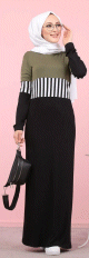 Robe moderne décontractée à capuche pour femme (Modest Fashion) - Couleur noir blanc et kaki - REF. 32965 (24.90 €) - En Promotion à 17.90 €