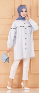 Tunique-Chemise habillée ample avec bande et boutons noirs (Boutique en ligne Vêtement Hijab) - Rayures de couleur bleu clair - REF. 36414 (25.00 €)