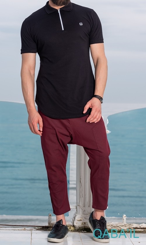 qamis noir manches longues avec col (Qamis fashion - Taille L) - REF. 7822 (25.00 €)
