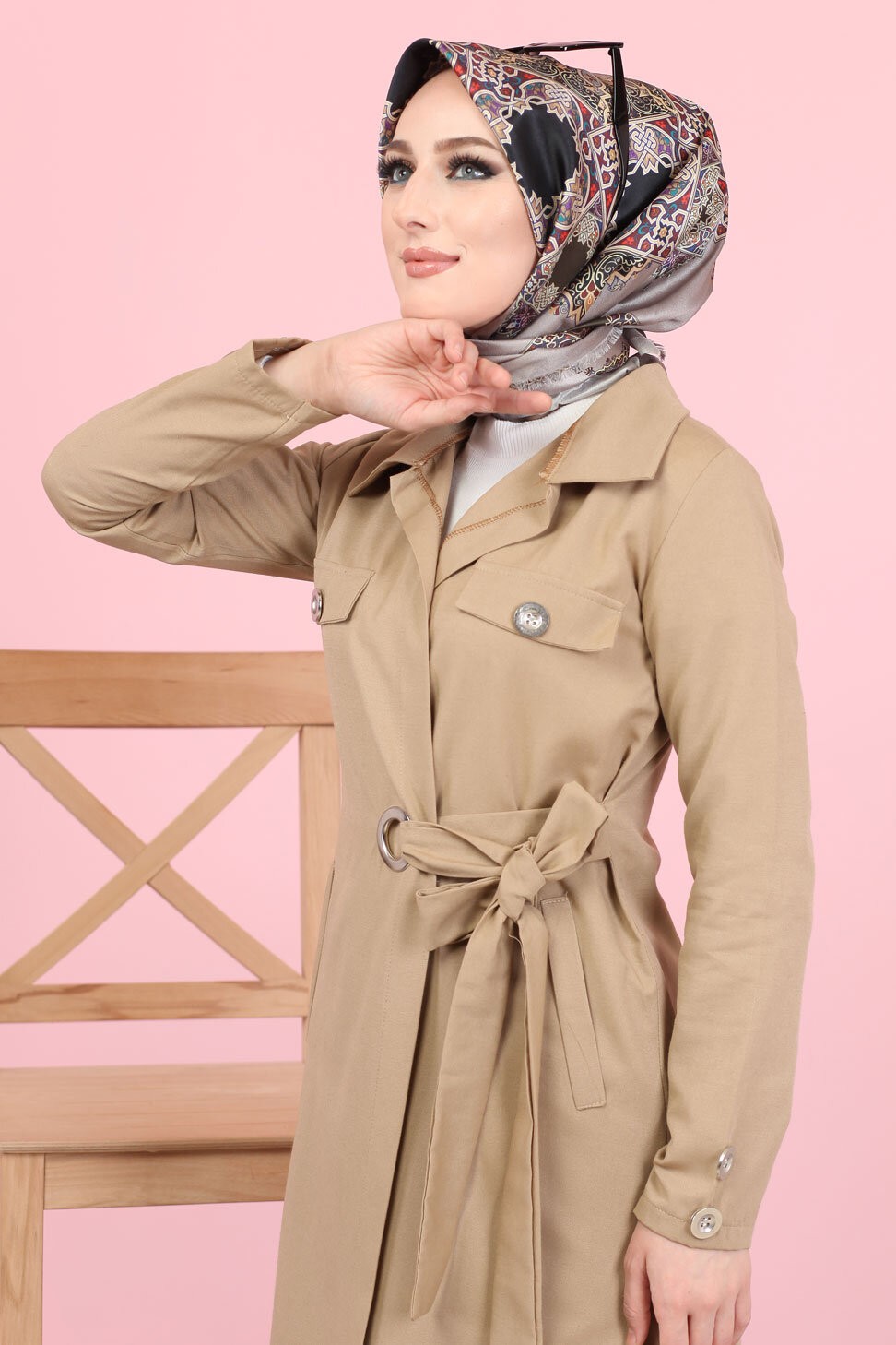 Trench femme (Manteau Hijab Saison Automne Hiver) - Couleur beige - REF. 37736 (35.00 €)