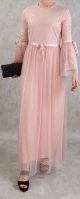 Robe de soirée longue en tulle à dentelle de couleur rose clair - REF. 31454 (39.00 €)