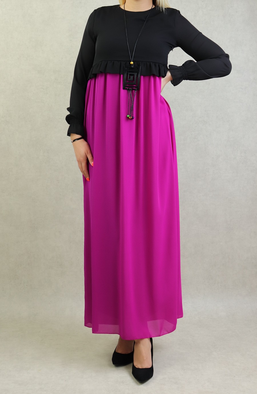 Robe de soirée maxi-longue bicolore assortie d'un collier pour femme - Couleur Noir et Violet Vetement & Accessoire