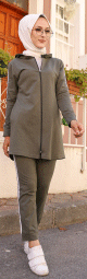 Survêtement femme à capuche de couleur gris clair chiné avec bandes tricolores (Vetement Sport - Hijab - Turquie) - REF. 31651 (35.00 €)