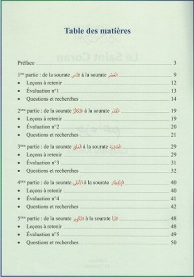 Ce manuel présente le chapitre Amma du Saint Coran selon une approche originale qui consiste en :