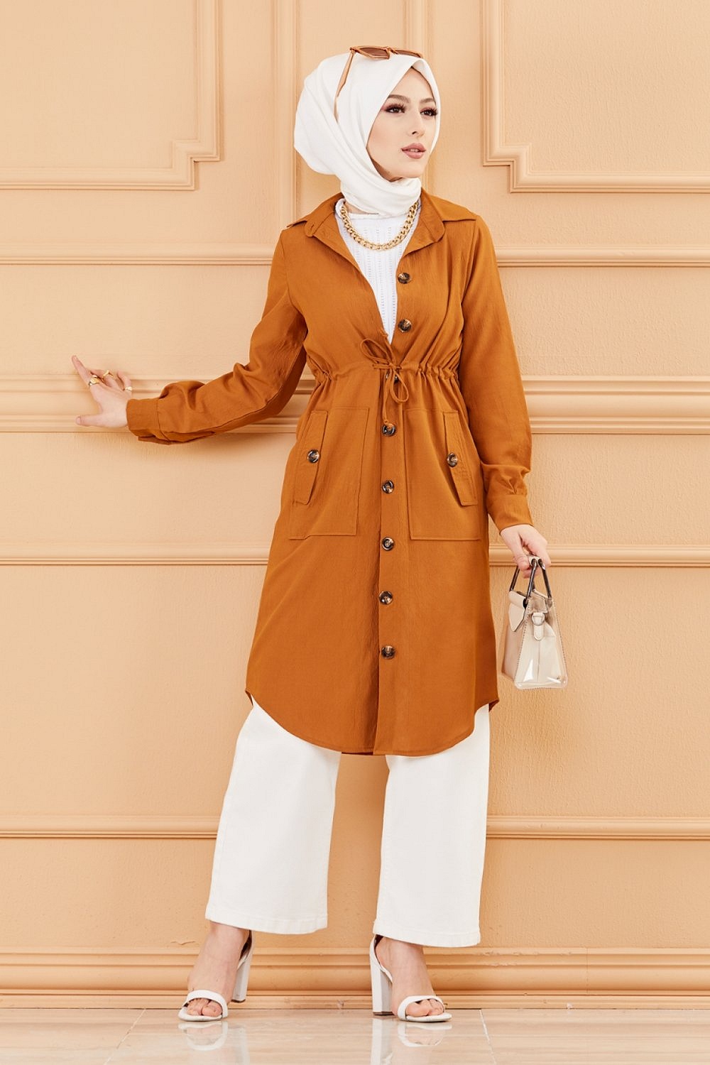 Tunique Veste style saharienne (Boutique mode musulmane) - Couleur tabac