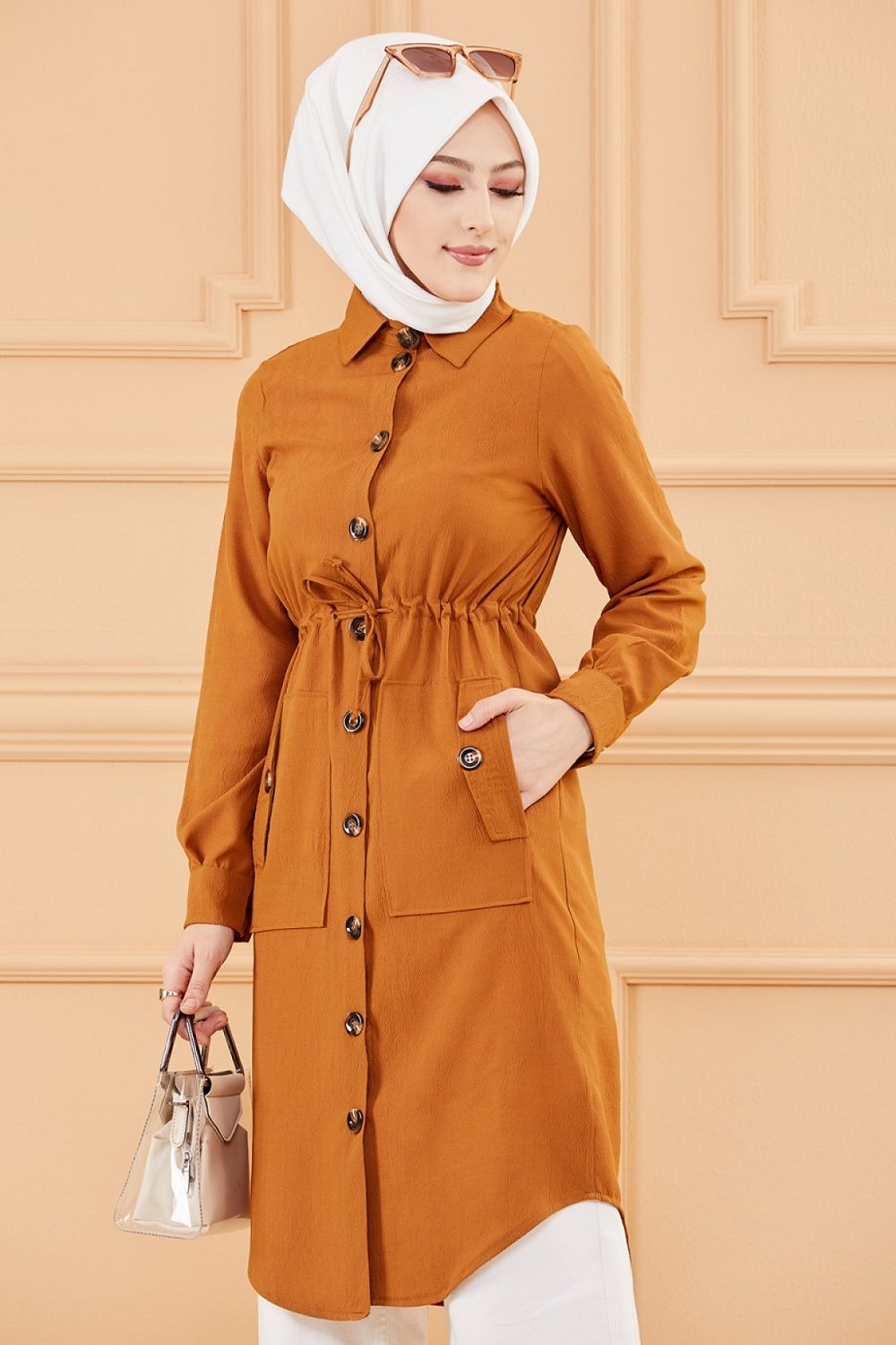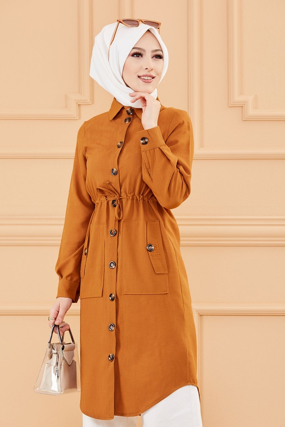 Tunique Veste style saharienne (Boutique mode musulmane) - Couleur tabac Vetement & Accessoire