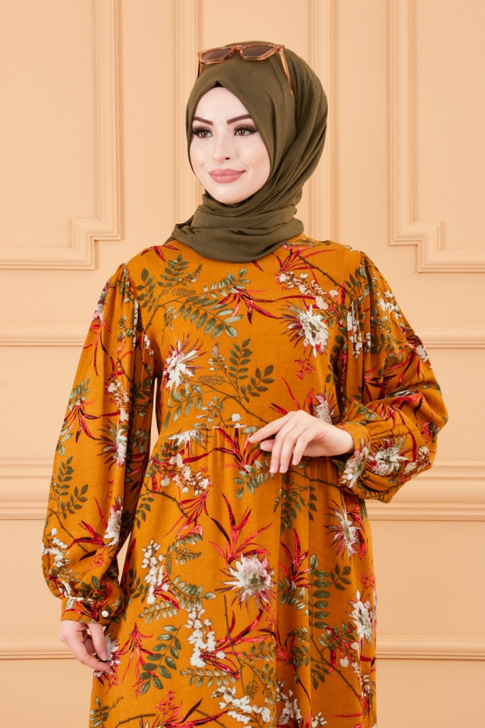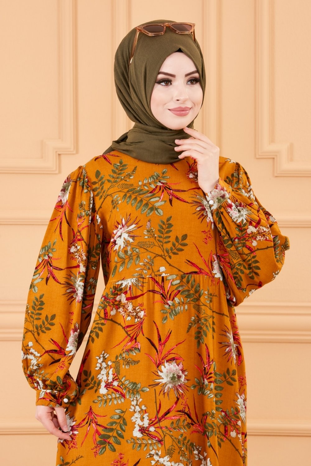 Robe décorée de boutons pour femme voilée - Vêtement islamique moderne - Couleur Moutarde - REF. 33911 (22.00 €)