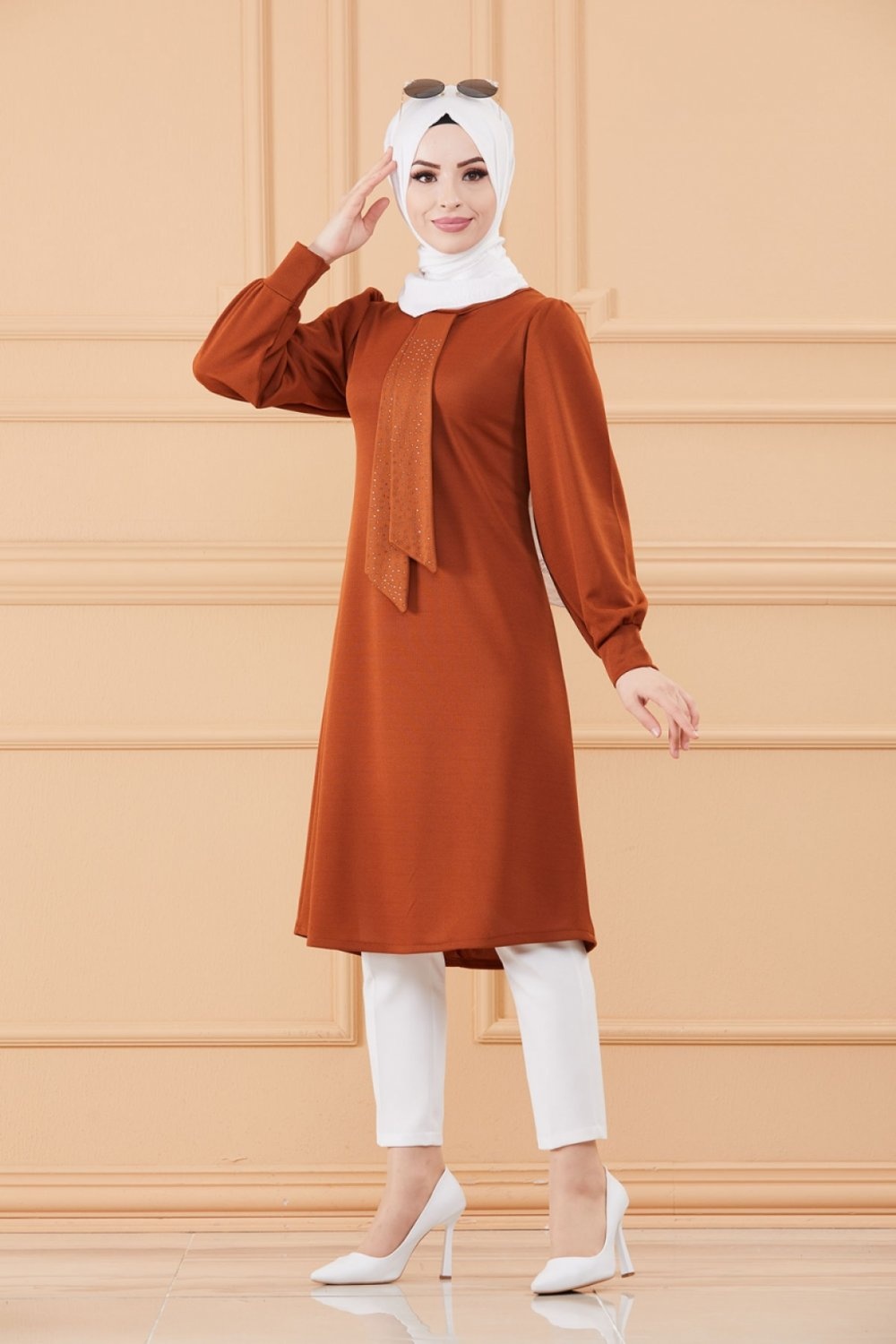 Tunique style habille pour femme (Tenue hijab classique) - Couleur brique