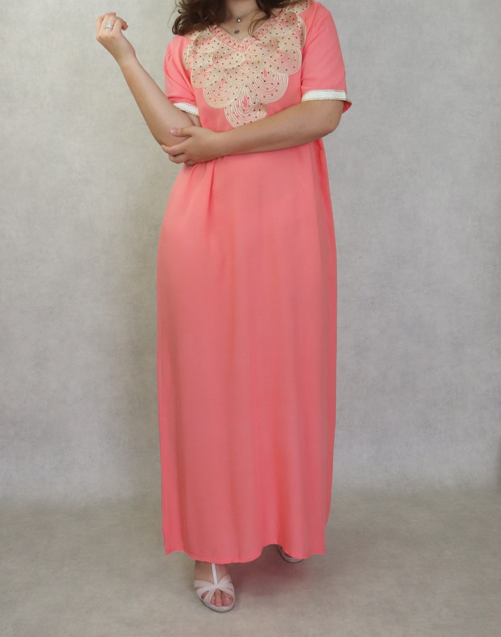 Robe orientale manches courtes avec de jolies broderies traditionnelles japonaises et perles dorées.