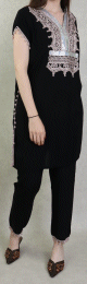 Ensemble Deux pièces tunique et pantalon style Jabador avec broderies et pompons pour femme - Couleur Noir - REF. 37204 (24.90 €)