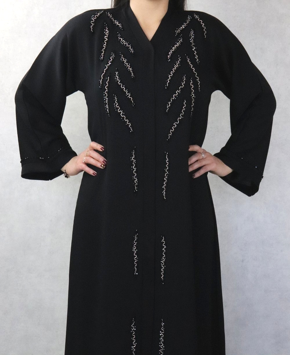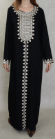 Robe de soirée Abaya Dubaï noire de qualité avec broderie perles et strass argentés - REF. 38190 (49.00 €)