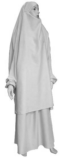 Jilbab 2 pièces ample de marque Best Ummah. La cape du jilbab est à bandeau intégré, cache menton et manches élastiques.