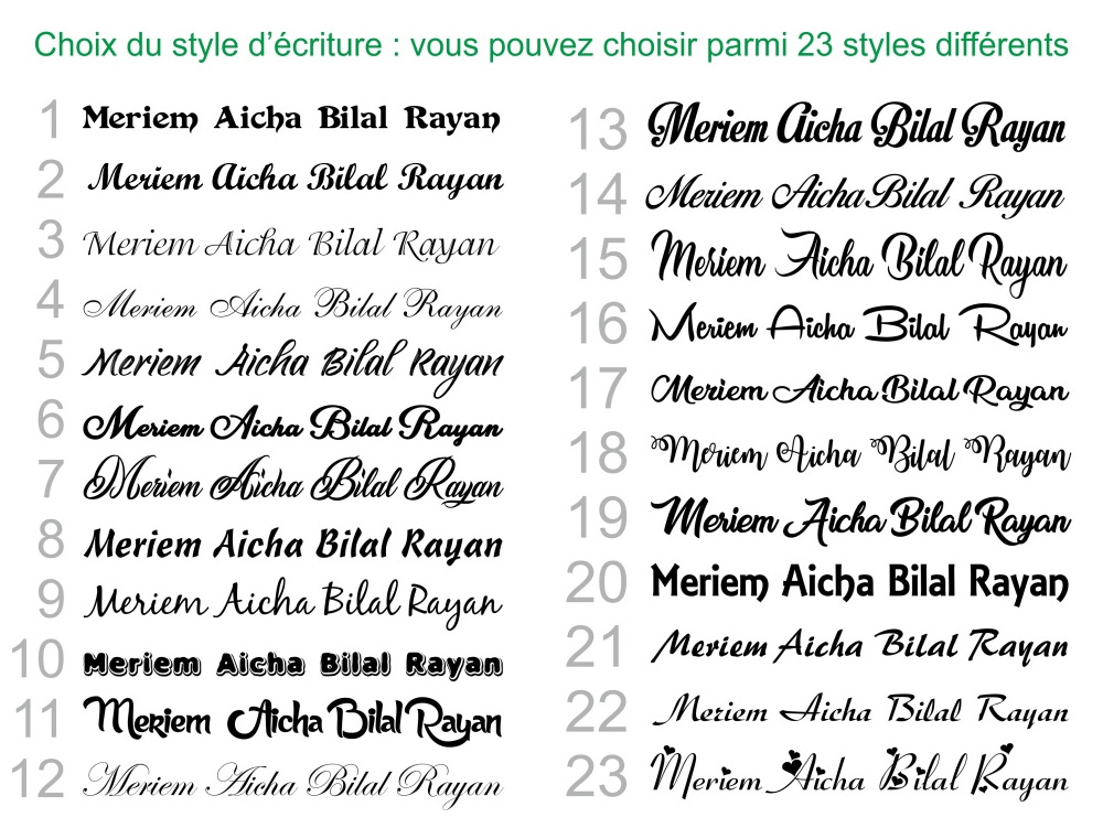 Vous pouvez choisir l'endroit de l'impression du prénom.