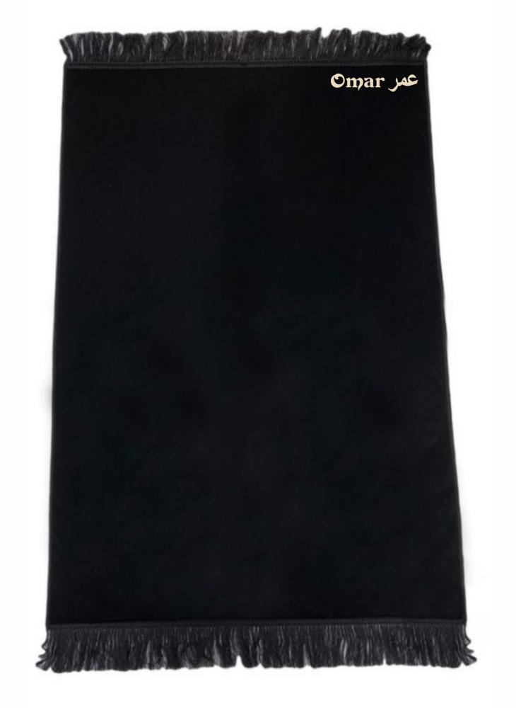 Tapis de priere adulte en velours couleur noir uni sans motifs personnalise avec le prenom de votre choix