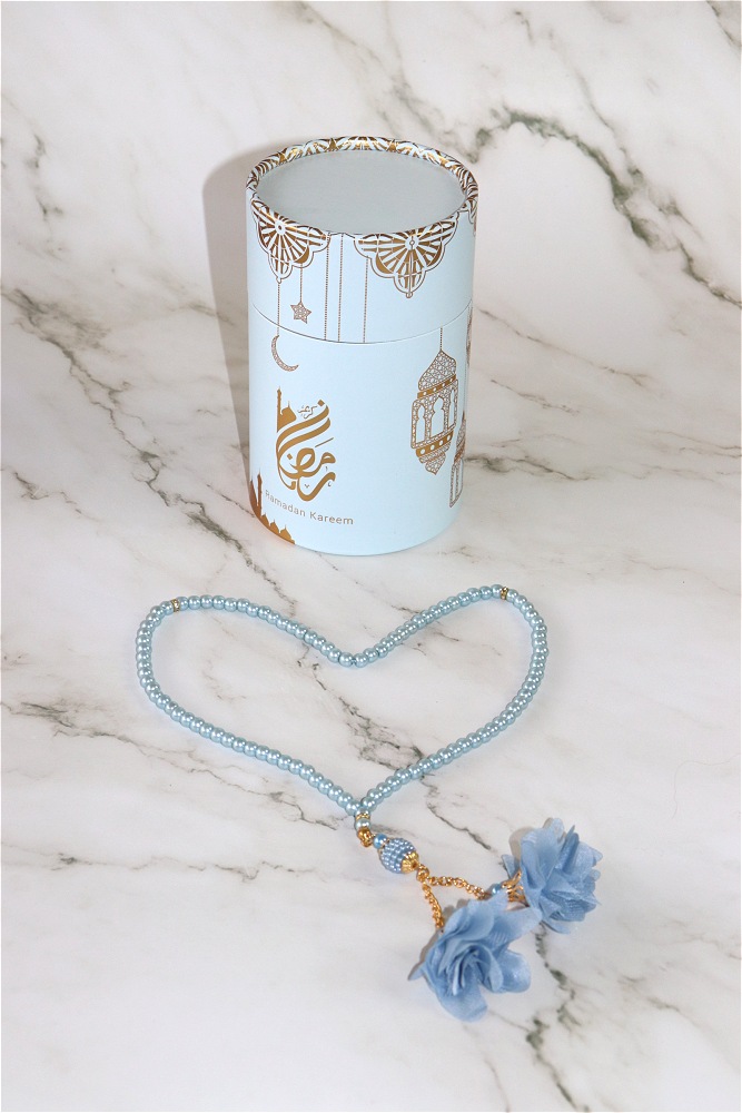 Coffret Cadeau "Ramadan Kareem" : Boite cadeau avec Tapis et Sebha deluxe assorti - Couleur Bleu ciel doré - REF. 39328 (14.90 €)