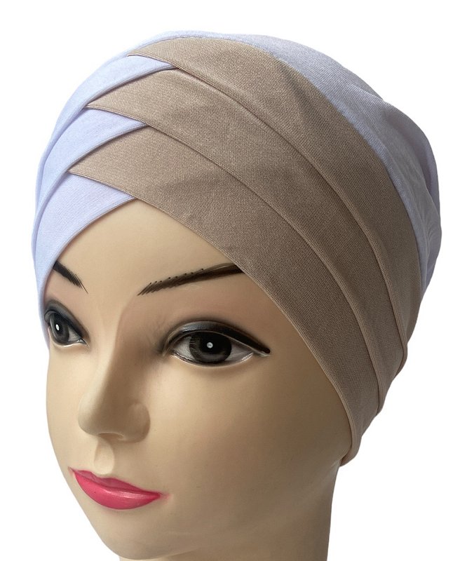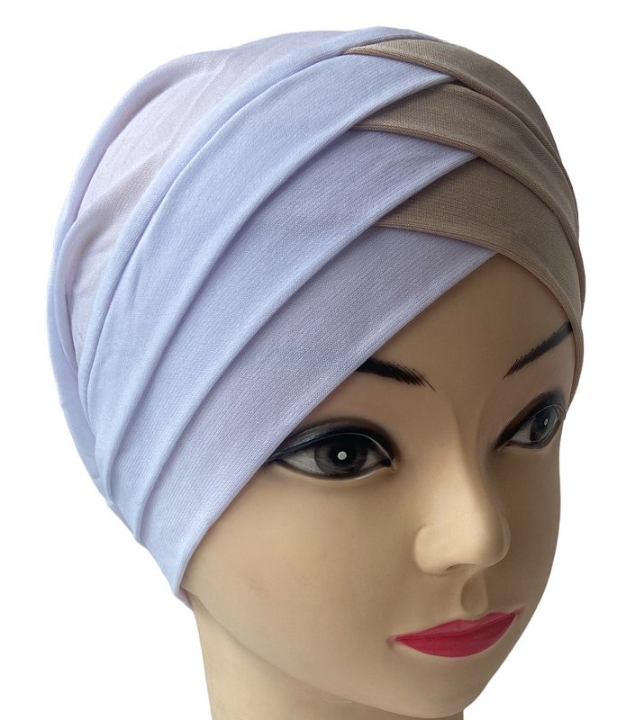 Turban bonnet croise bicolore femme moderne - Couleur Blanc et beige