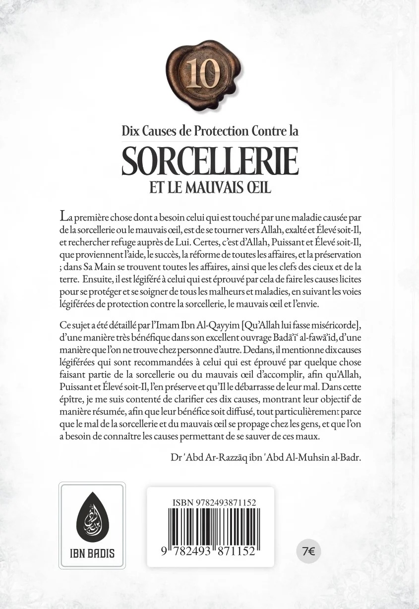 Ce sujet a été détaillé par l’Imam Ibn Al-Qayyim [Qu’Allah lui fasse miséricorde], d’une manière très bénéfique dans son excellent ouvrage Badā’i' al-fawā’id, d’une manière que l’on ne trouve chez personne d’autre. Dedans, il mentionne dix causes légiférées qui sont recommandées à celui qui est éprouvé par quelque chose faisant partie de la sorcellerie ou du mauvais œil d’accomplir, afin qu’Allah[Le Puissant], l’en préserve et qu’Il le débarrasse de leur mal. Dans cette épître, je me suis contenté de clarifier ces dix causes, montrant leur objectif de manière résumée, afin que leur bénéfice soit diffusé, tout particulièrement parce que le mal de la sorcellerie et du mauvais œil se propage chez les gens, et que l’on a besoin de connaître les causes permettant de se sauver de ces maux.