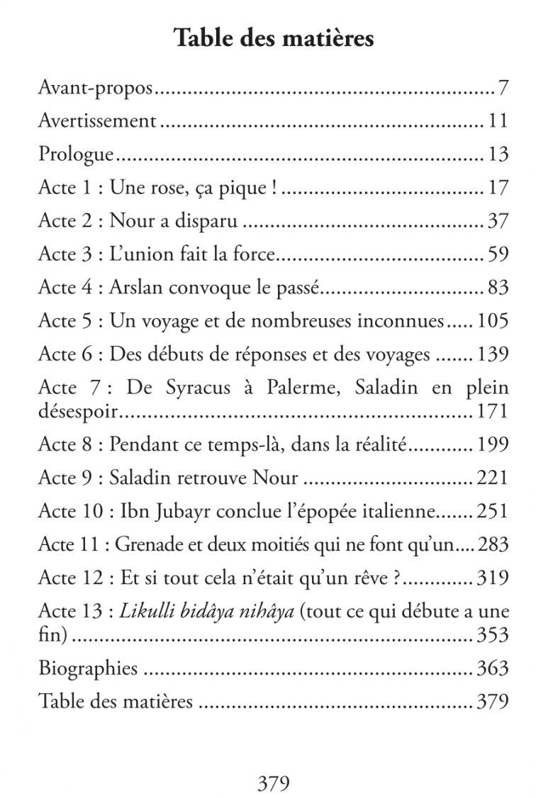 Ce dernier tome, fait de rebondissements aussi déroutants les uns que les autres, amènera le lecteur à apprécier une dernière fois la façon dont l’auteur brouille les pistes avant de révéler toute la profondeur d’un récit qui consacre non seulement la riche histoire de la présence musulmane en Sicile mais aussi et surtout le parcours initiatique auquel Saladin a été soumis tout au long de ces années avant d’être adoubé par ses pairs. Récit à la fois riche et tumultueux, Saladin aura une énième fois maille à partir avec Madame Vincent, son ex-enseignante d’histoire qui, décidément, tentera toujours de lui causer de sérieux tracas.