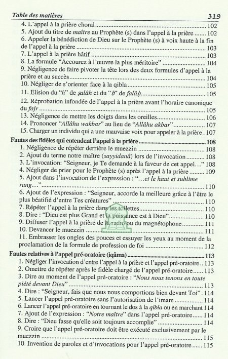 Livre regroupant les erreurs que commettent les prieurs et comment les réparer et donne les conditions d'acceptation de la prière...