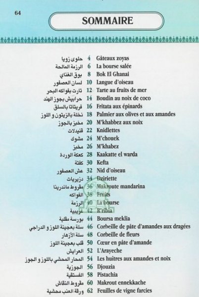 Un livre de gâteaux algériens présenté par Abdi Mohamed avec des photos illustrées.
