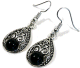 Boucles d'oreilles pendantes en métal argenté ciselé serties de pierres noir - REF. 29561 (5.90 €)