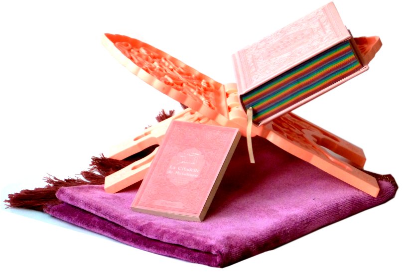Pack Cadeau Mauve : Le Noble Coran avec couleurs Arc-en-ciel (Rainbow), La Citadelle du Musulman, Le Prophète Muhammad (SAW) et la femme, Tapis uni en velours, Diffuseur de parfum (assortis) - REF. 24134 (39.90 €) - En Promotion à 35.00 €