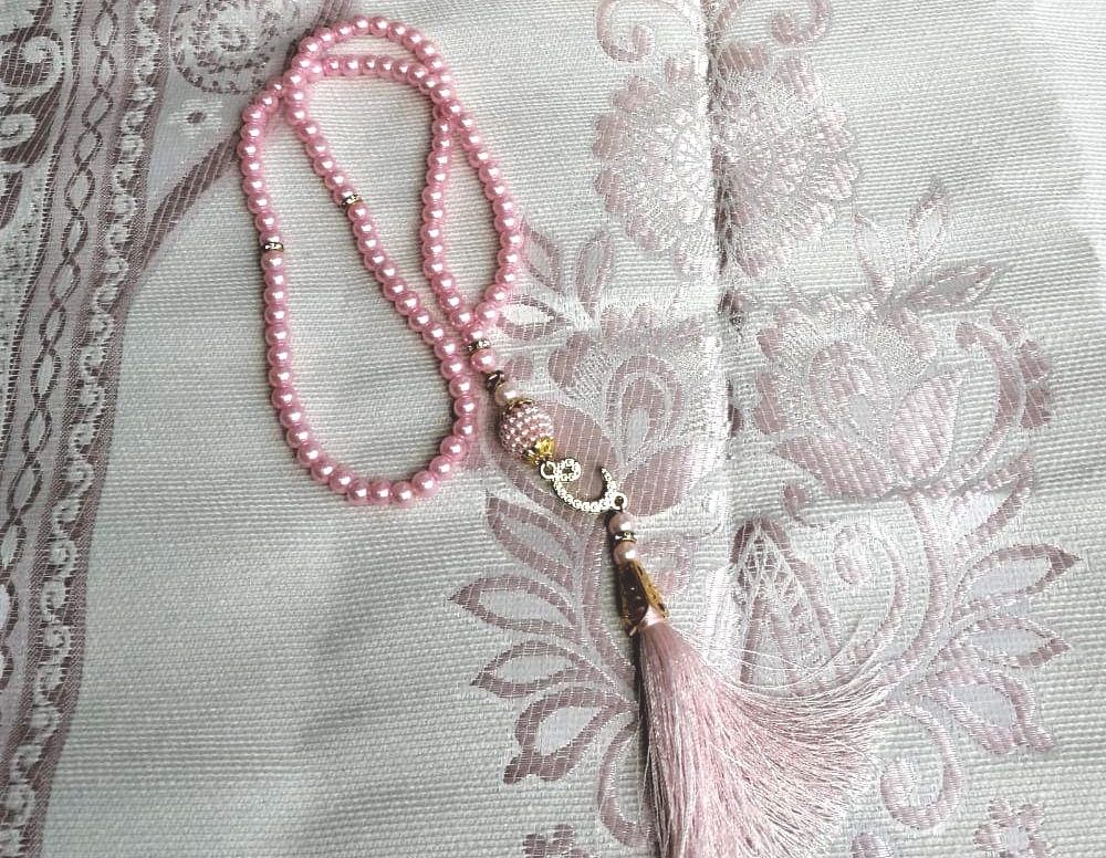 - Un Chapelet (Sebha/Tasbih) 99 perles, de qualité supérieure, avec des perles et décoration métallique dorée.