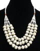 Collier ethnique artisanal imitation pierres blanches agrémenté de perles blanche et en métal - REF. 18952 (14.00 €)