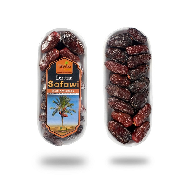 La datte Safawi est originaire d'Arabie Saoudite. De taille moyenne son goût est assez proche de la 'Ajwa', sa texture proche de la Ajwa et sa forme proche de la Deglet Nour fait d'elle un bon compromis pour ceux qui ont du mal à choisir leurs dattes préférées.