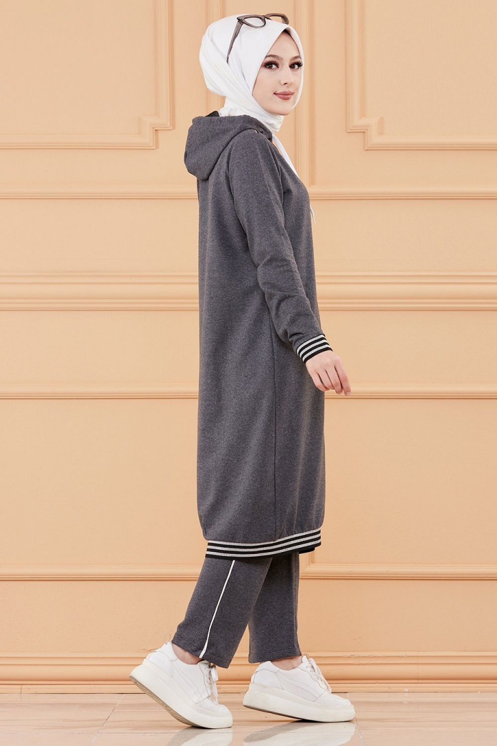 Bandes décoratives noires argentés... Veste longue zippée avec capuche.