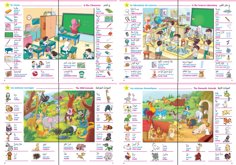 Cet imagier pédagogique et ludique, qui comporte des milliers de mots dans les trois langues, illustrés et regroupés en thèmes, permet de faciliter la lecture et l’apprentissage en stimulant la mémoire visuelle. Aussi, les illustrations des différentes scènes et situations de la vie quotidienne familiarisent l'enfant avec le monde qui l’entoure et l’accompagnent en douceur dans l’apprentissage de ces trois précieuses langues.