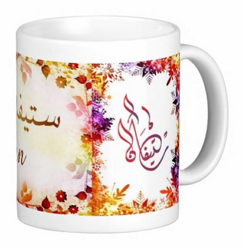 Voir l'ensemble des mugs dédiés au prénoms calligraphiés en arabe (Mugs prénoms arabes - Mugs prénoms français féminins)