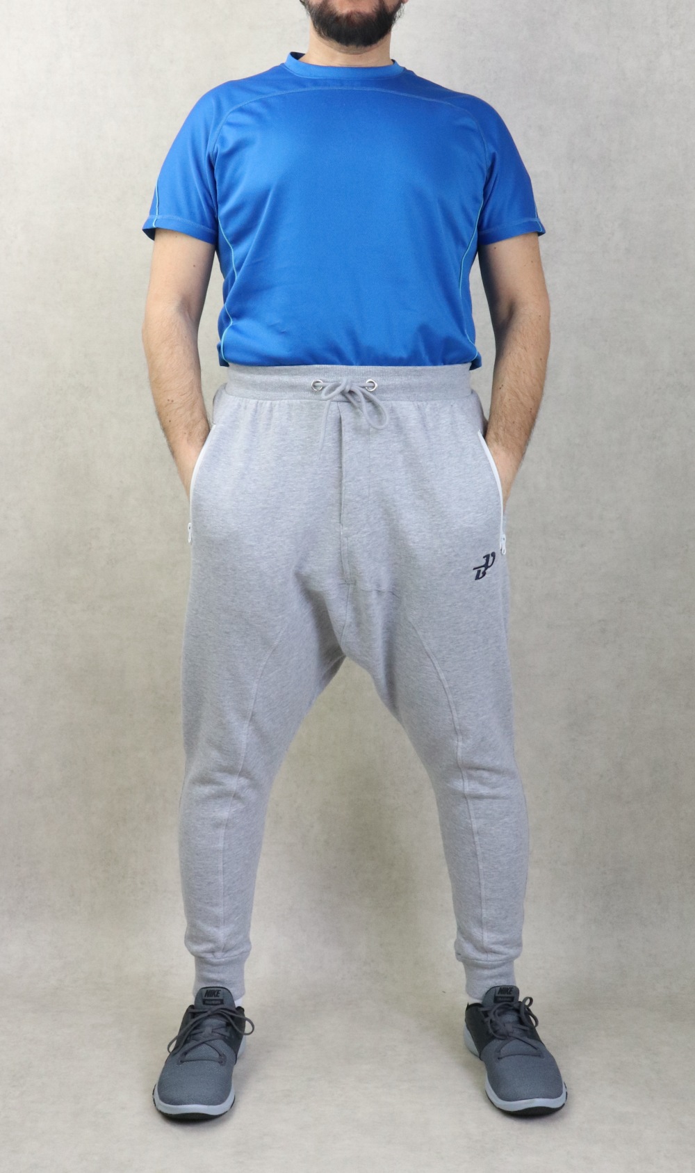 Seroual large et long couleur gris clair chiné. Tissu épais coton léger très doux. Deux poches zippées blanches latérales et une poche arrière. Braguette zippe. Taille élastique avec cordon de serrage. Chevilles élastiques. Brodé logo BU (Best Ummah).