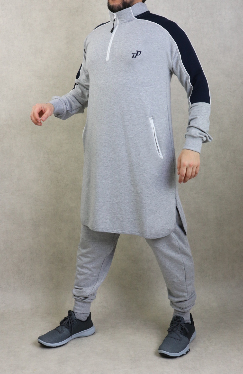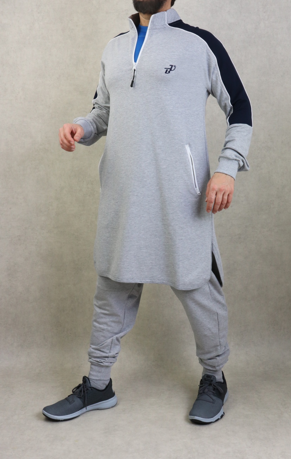 Ce qamis court peut s'adapter avec tous les pantalons de couleur gris chiné clair de la marque Best Ummah.