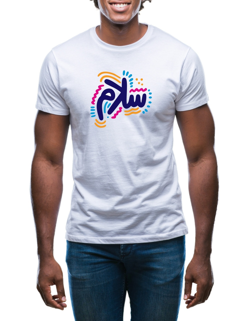 T-Shirt personnalisé avec calligraphie Paix "Salâm" en arabe (سلام) et message optionnel (plusieurs couleurs disponibles) - REF. 32991 (14.90 €)