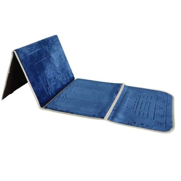 Tapis de prière pliable ultra confortable avec adossoir intégré (dossier - chaise - support pour le dos pour s'adosser) avec sa sacoche - Couleur Bleu foncé - REF. 39577 (24.90 €)