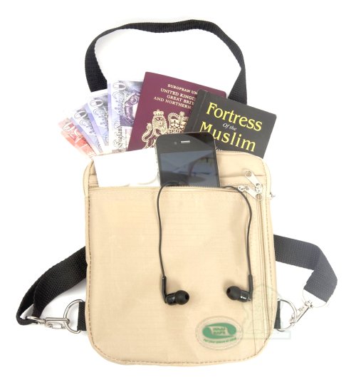 Pour avoir l'esprit tranquille, munissez-vous du sac/sacoche "Hajj Safe" sécurisé pour un Hadj ou une 'Umra pleine d'adorations.Ce sac bandoulière peut se porter de côté ou autour du cou il est spécialement conçu pour les adultes accomplissant le voyage le plus sacré et ce, en toute sécurité.Cette sacoche convient aux deux sexes (femmes et hommes). Ce produit possède 3 poches zippées (munies de fermeture éclair) pour protéger tous les articles transportés pendant que vous accomplissez vos rituels de Hadj ou de la Omra, de plus, vous disposez d'un assez grand volume pour y mettre votre téléphone portable, votre argent, vos livres de poche (ex. : La Citadelle du musulman, et autres livres d'invocations), vos écouteurs... En plus de tout cela, vous profitez de nombreux avantages de sécurité, parmi lesquels :