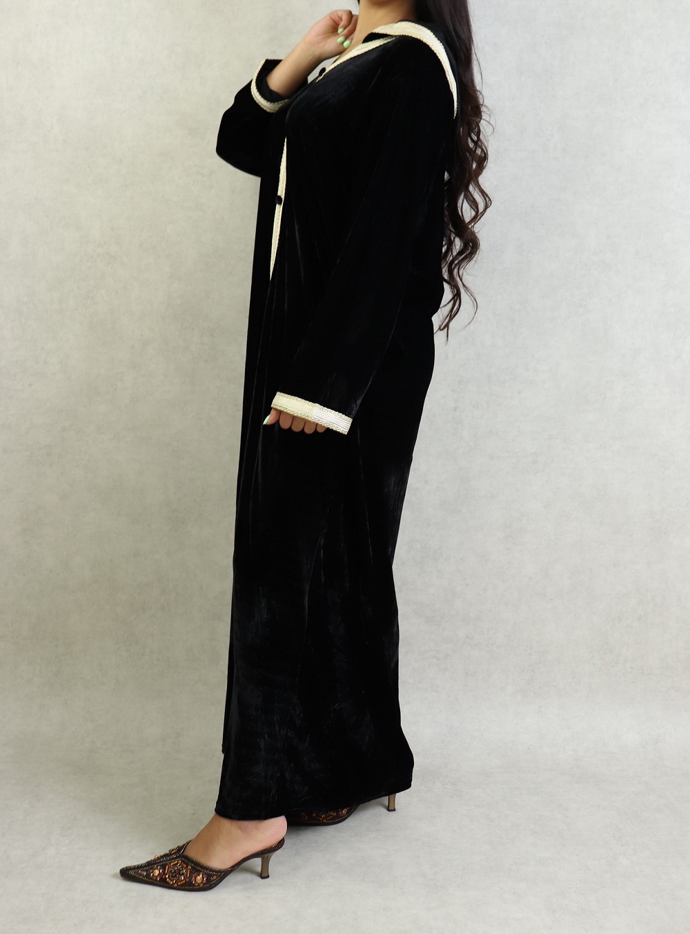 Robe longue en velours avec broderies sur tout le long (Robes Automne-Hiver pour femme) - Couleur Noir - REF. 34287 (29.00 €)